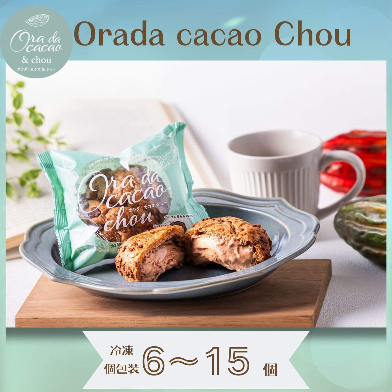 チョコレートの原料にカカオトレース認証製品のダークチョコレートを使った甘さ控えめのカカオの風味がふわっとがおいしいシュークリームです。