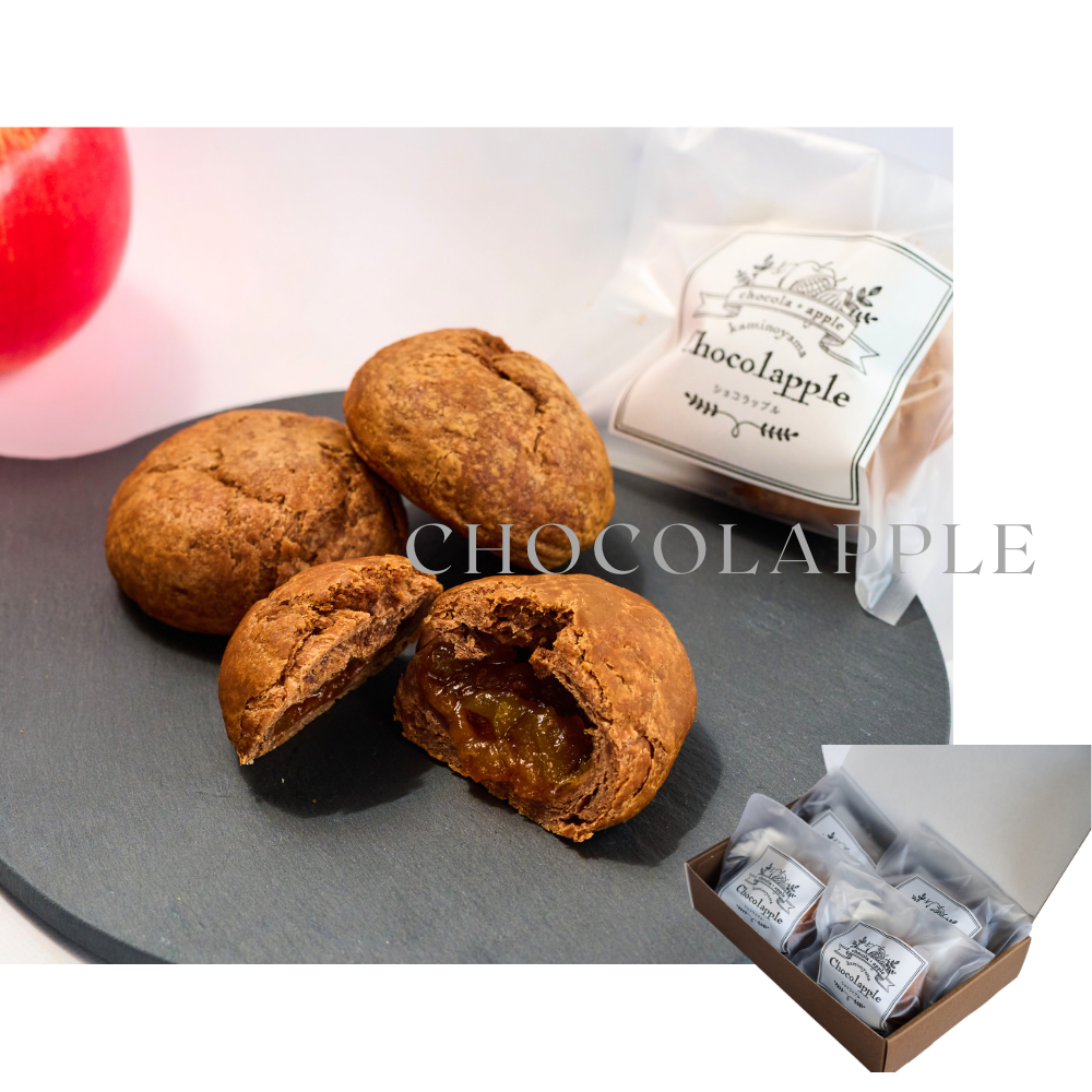 香ばしく焼き上げたサクサクのパイ生地で、 山形県上山市産りんごを贅沢に包み込んだ、果実感たっぷりのショコラ味のアップルパイです。 地元で収穫したりんごを自社工房で丁寧に加工し、 食感を残した角切りにして、じっくり煮詰めて仕上げました。 そこに合わせるのは、カカオトレース認証のカカオを使用した 芳醇でコク深いショコラ。 りんご本来の甘みとほどよい酸味に、カカオの余韻が重なり合い、奥行きのある味わいに。ショコラ味の香ばしいパイ生地と、 とろりとした果実とのフィリングが重なり合う、 どこか懐かしくも、新しさを感じる贅沢な一品です。 |